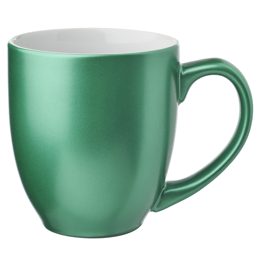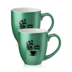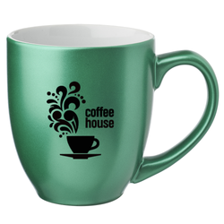 If you're in need of a stylish coffee mug that won't break the budget, look no further! This 16 oz. Metallic Bistro Coffee Mug is made of smooth molded ceramic composite and features a metallic colored exterior, white interior, C-curved handle and a high-curved grip for easy grab-and-go handling. Add a brand name, logo or message to create a wonderful and useful promotional item! Recommended Hand Wash Only.